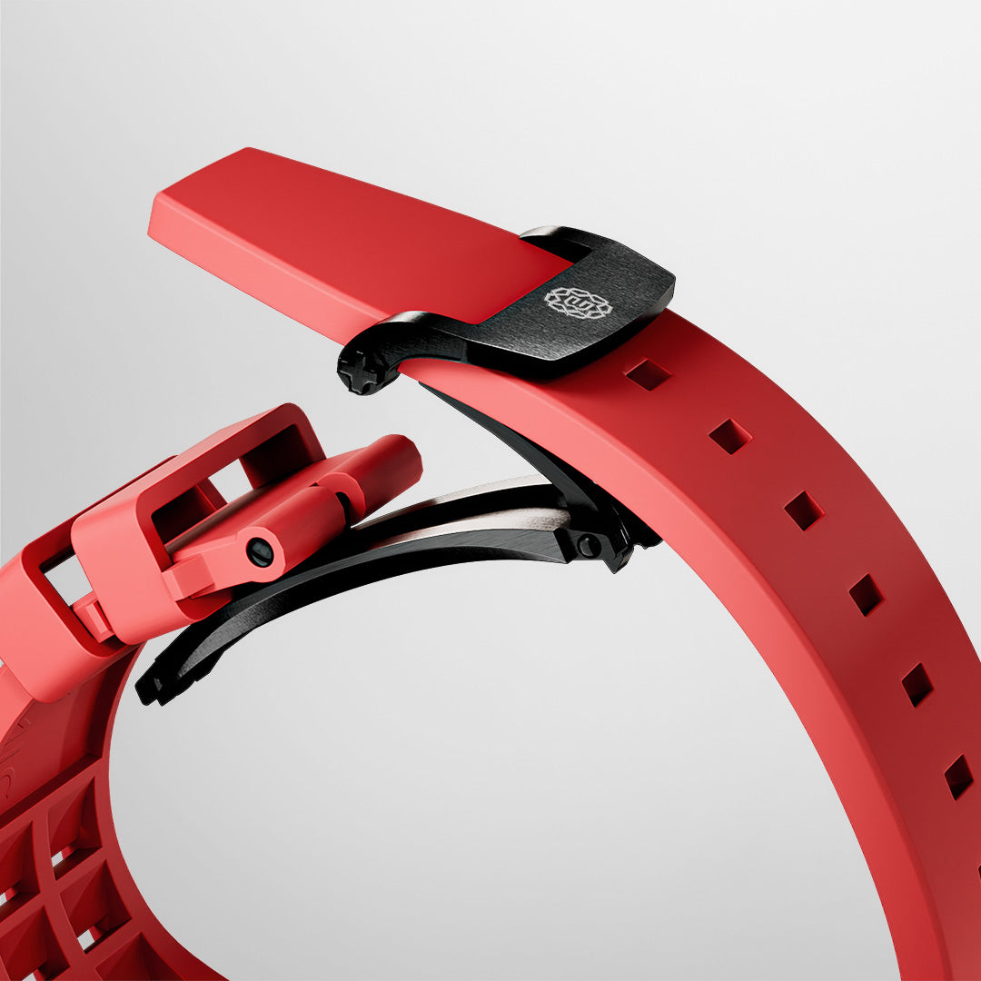 Dette premium fluorgummirem kombinerer overlegen elasticitet med en blid, hudvenlig tekstur. Let, åndbar og yderst holdbar, den leverer sportspræstationer uden at gå på kompromis med moderne urban sofistikering.