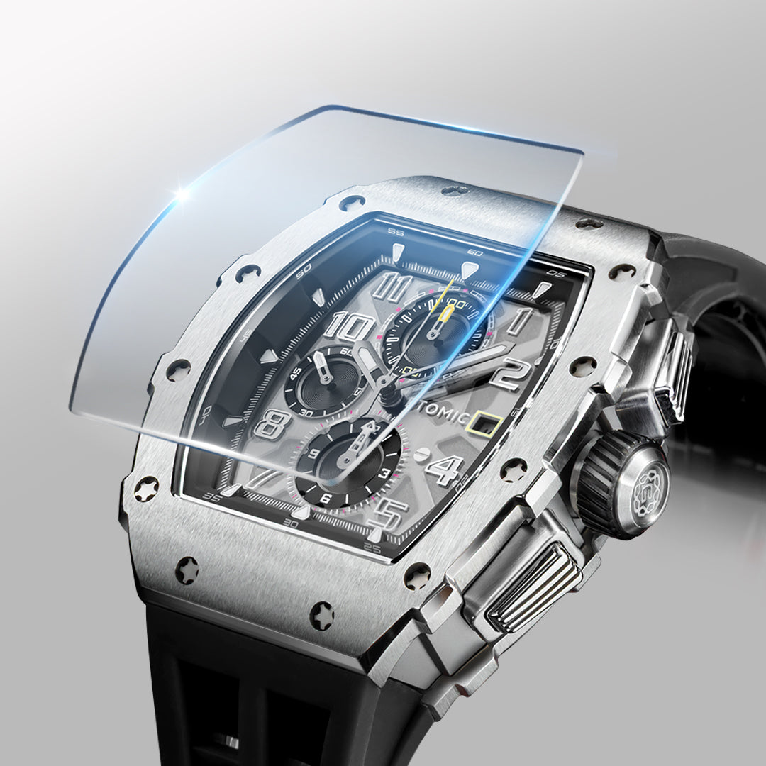 Equipped with a highly transparent sapphire crystal with anti-reflective coating for clear readability in any light, the dial is protected by Mohs 9 hardness for superior durability.