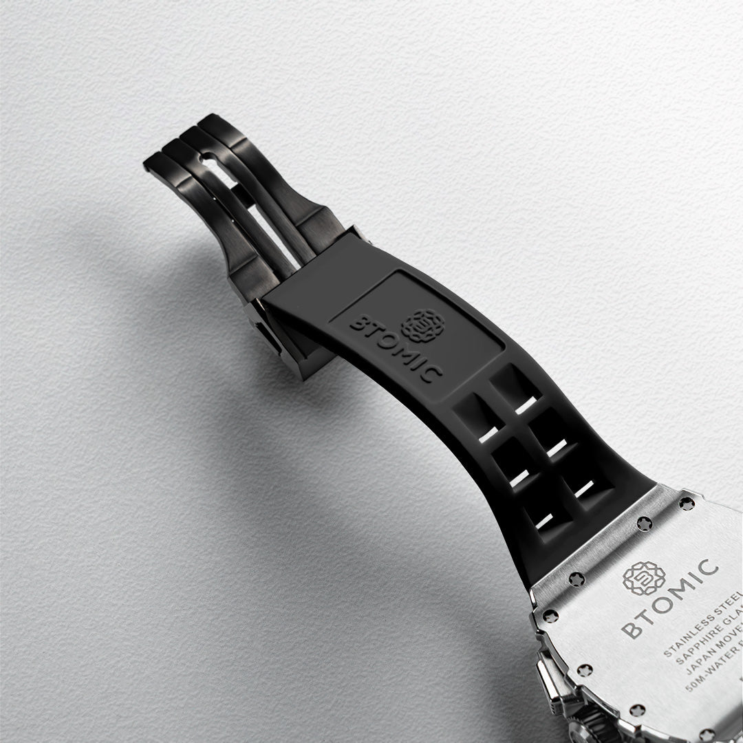 The highly elastic fluororubber strap is soft and skin-friendly, breathable and comfortable, perfectly balancing excellent sports performance and urban style.
